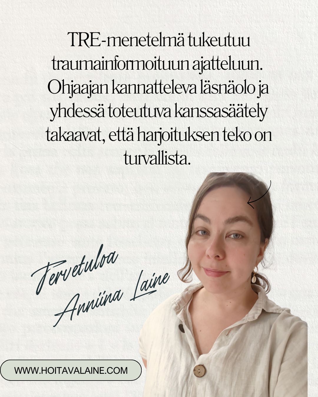 TRE-menetelmä ei sovellu akuutissa kriisissä oleville. Ota yhteyttä jos haluat keskustella sopisiko menetelmä sinulle.
